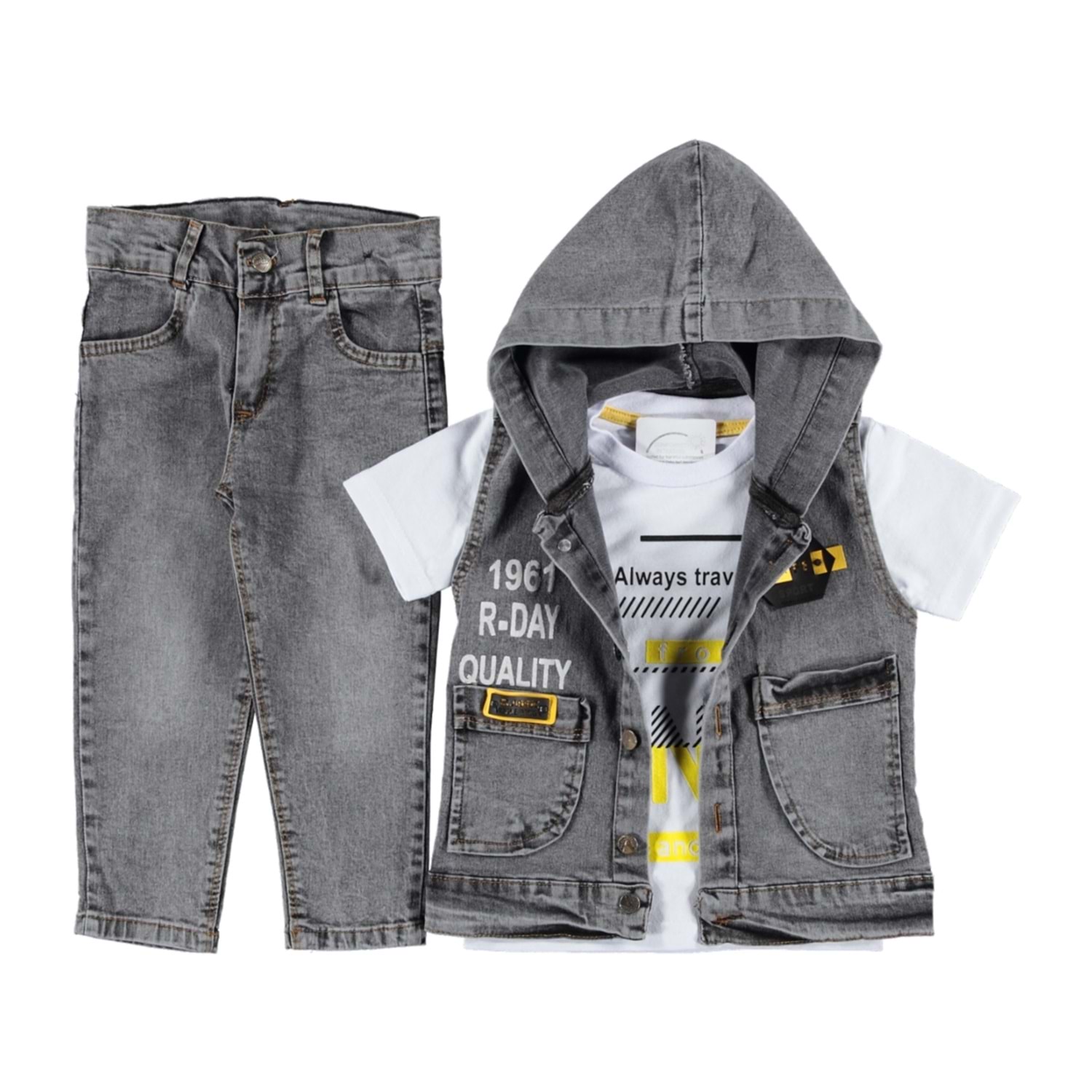 154583 ALWAYS BASKILI KOT YELEKLİ 3'LÜ ERKEK TAKIM 2/5 YAŞ - GRİ - 1-2 YAŞ