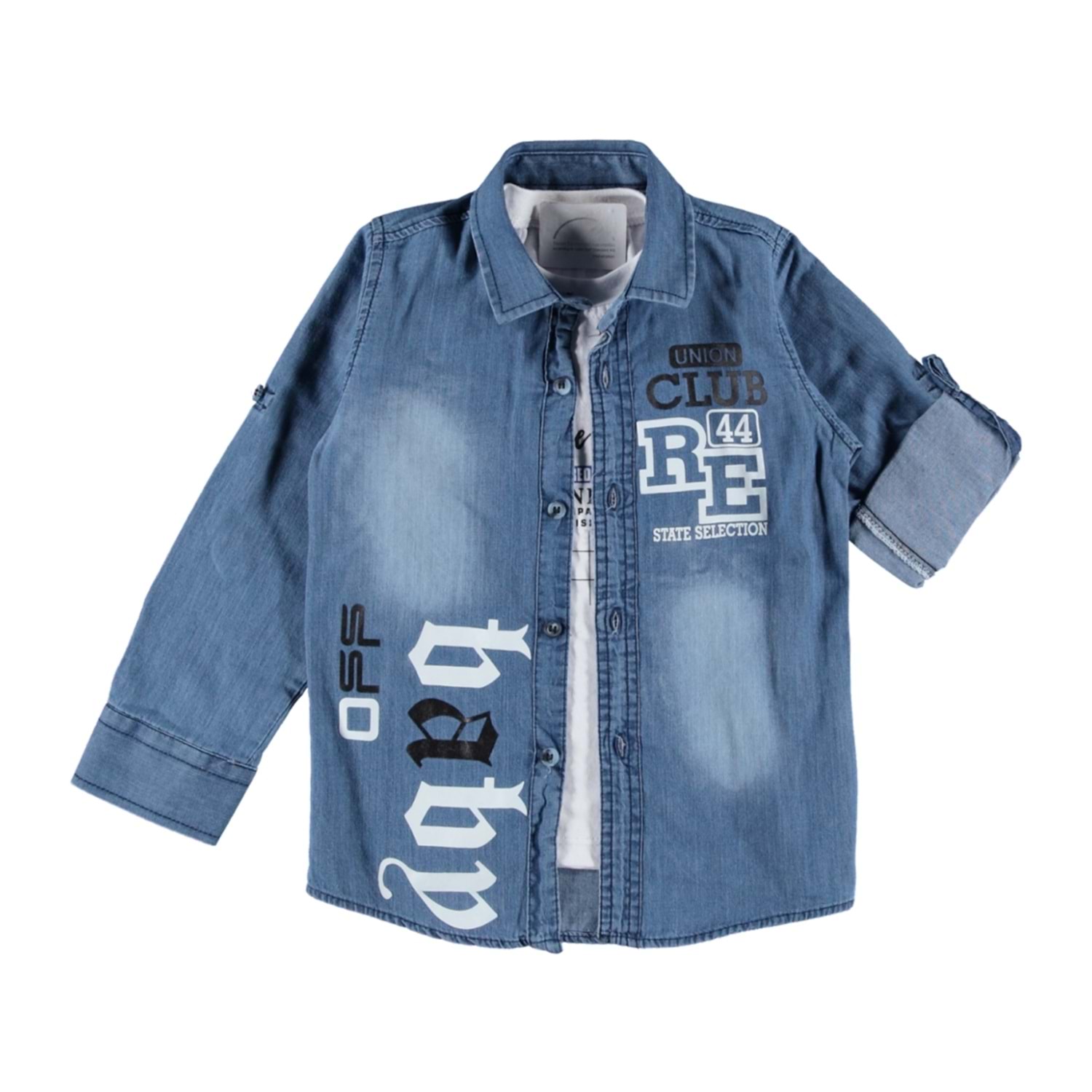 157338 CLUP 44 BASKILI UZUN KOL ERKEK KOT GÖMLEK 1/4 YAŞ - MAVİ - 2-3 YAŞ