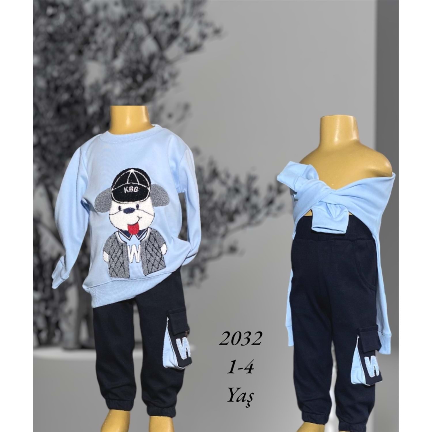 2032 Çocuk Köpek Baskılı Takım 1/4 - MAVİ - 2-3 YAŞ