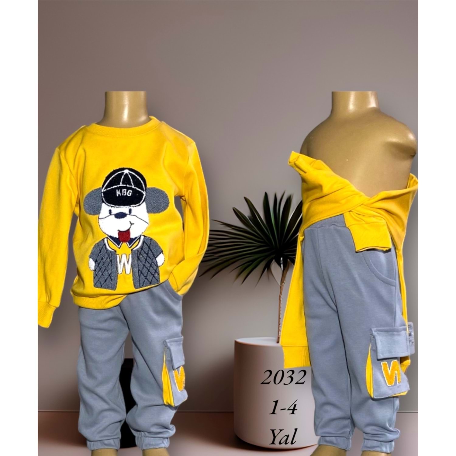 2032 Çocuk Köpek Baskılı Takım 1/4 - SARI - 2-3 YAŞ