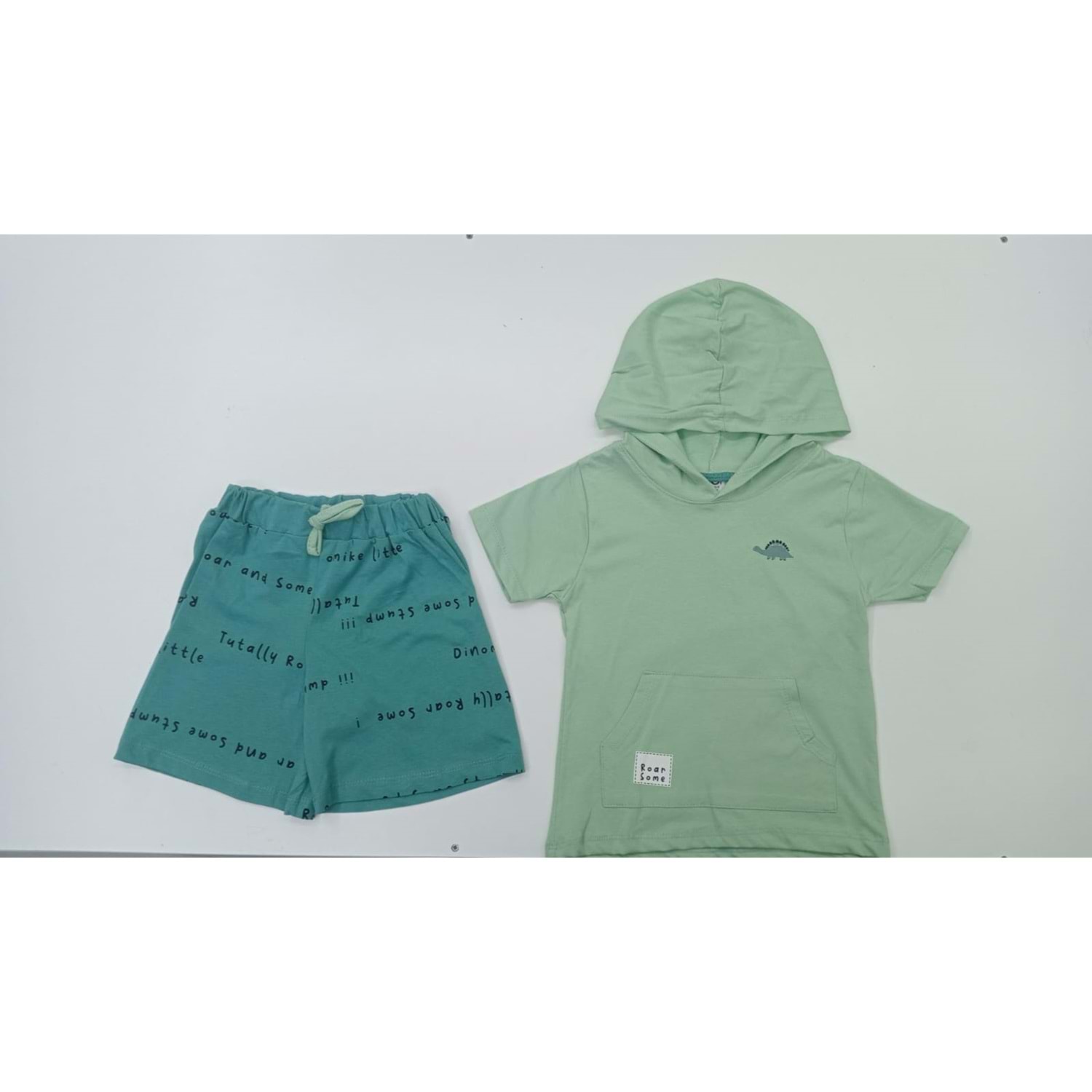 400961 KAPŞONLU BASKILI ŞORTLU ERKEK TAKIM 3Y,4Y,5Y,6Y - SU YEŞİLİ - 2-3 YAŞ