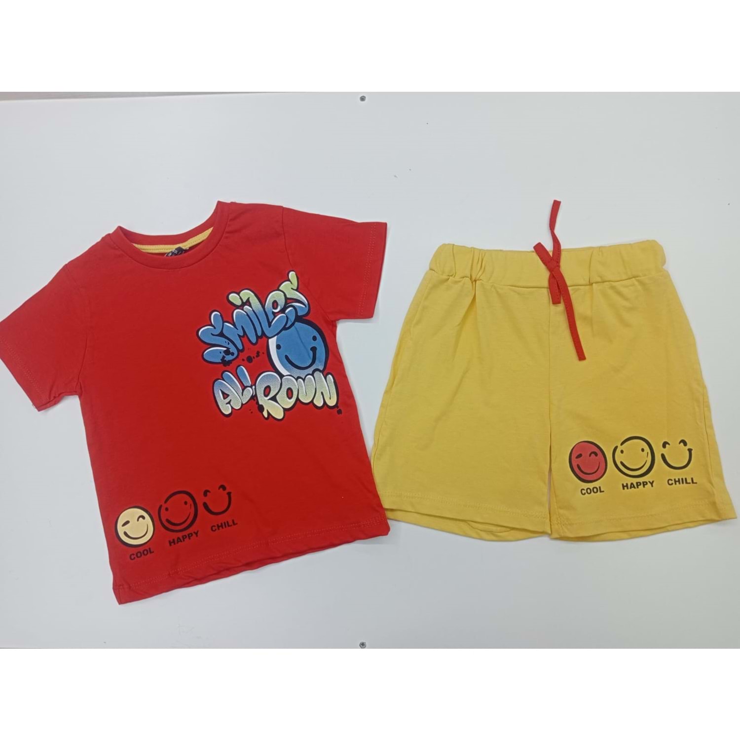 402692 Gülen Yüz Baskılı Şortlu Erkek Takım 3Y,4Y,5Y,6Y - KIRMIZI - 4-5 YAŞ