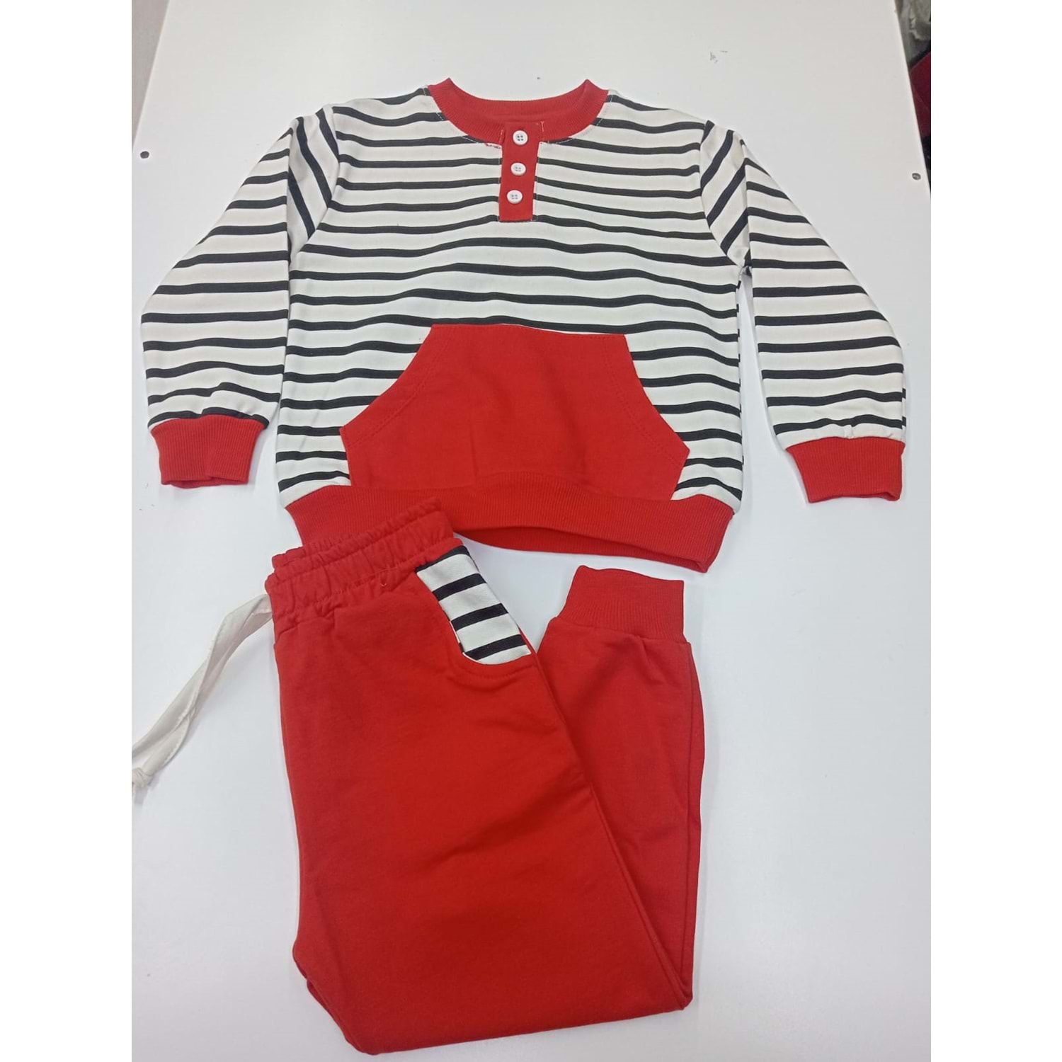 410290 Çizgili Kanguru Cepli Erkek Takım 3Y,4Y,5Y - KIRMIZI - 4-5 YAŞ