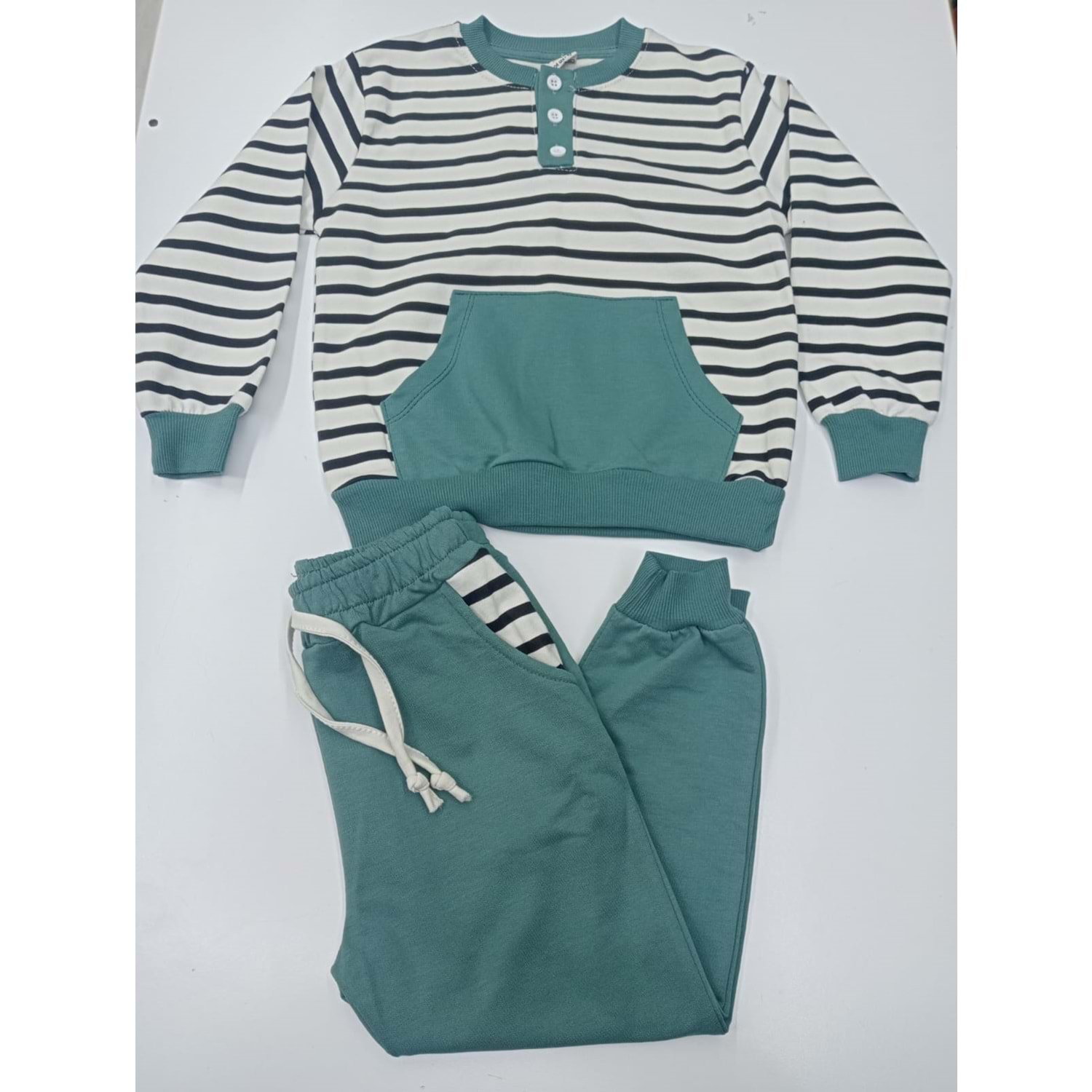 410290 Çizgili Kanguru Cepli Erkek Takım 3Y,4Y,5Y - TURKUAZ - 5-6 YAŞ