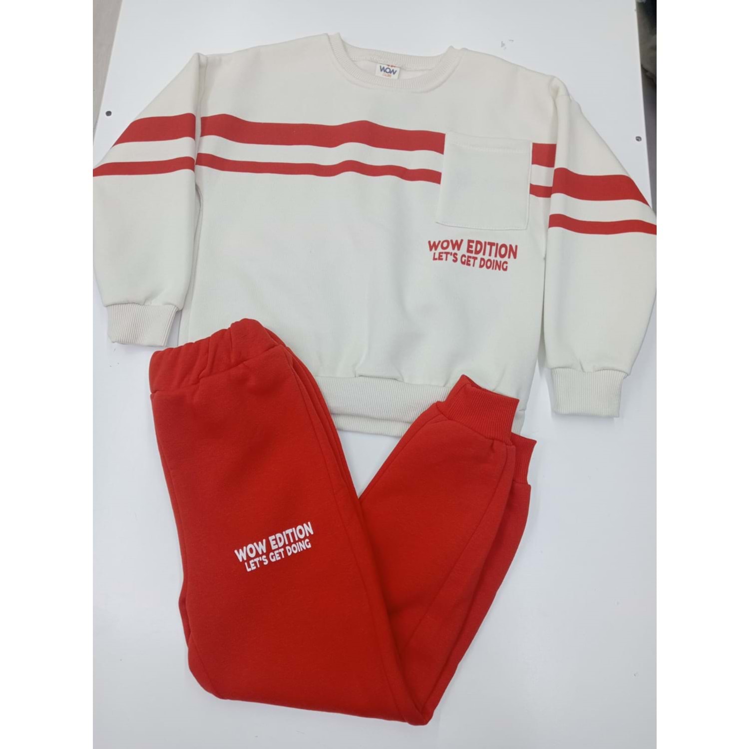 415758 3 İP Cepli Çizgili Wow Baskılı Erkek Takım 5Y,6Y,7Y,8Y - KIRMIZI - 5-6 YAŞ
