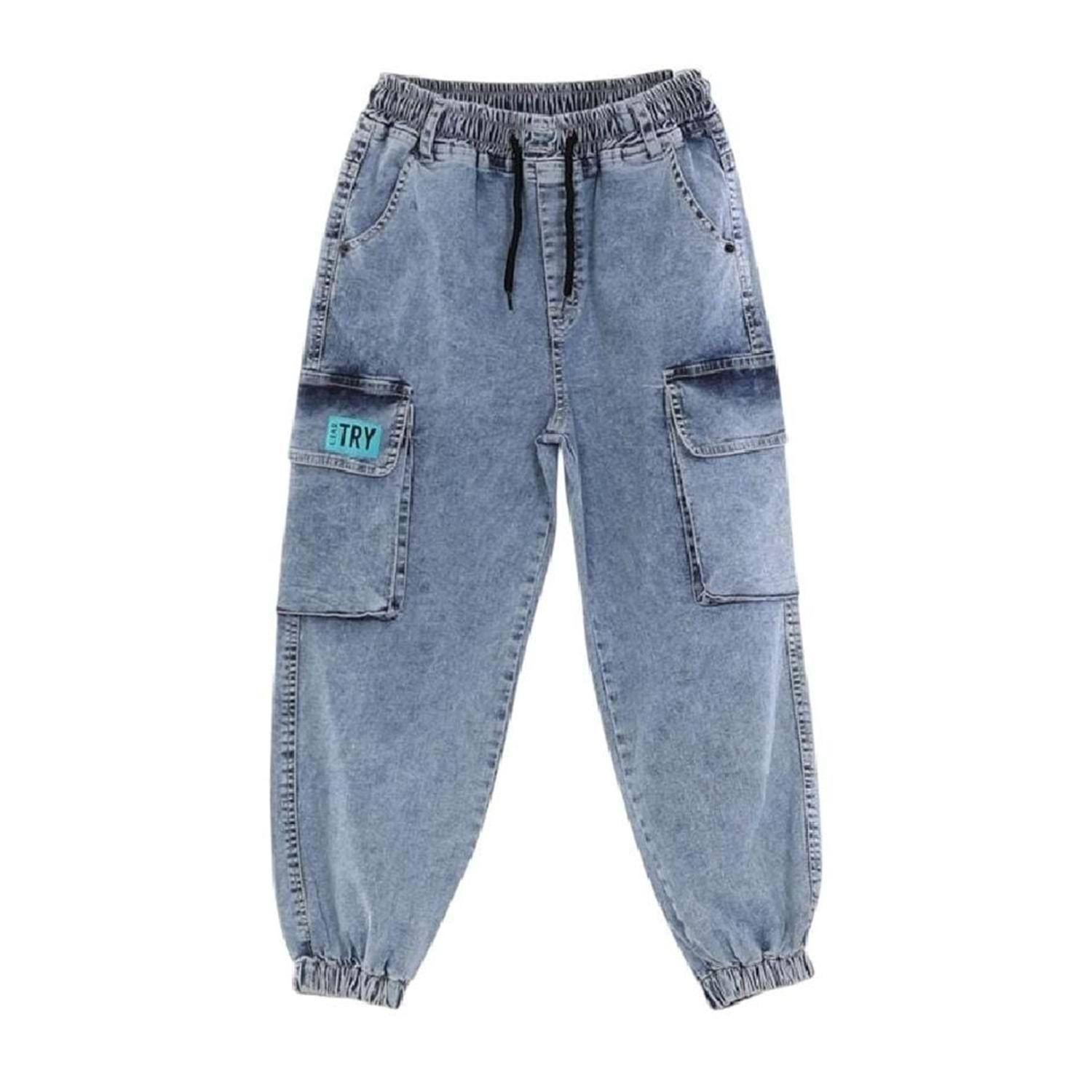420450 Bel Paça Lastikli Çift Kargo Erkek Kot Pantolo 8/12YAŞ - MAVİ - 7-8 YAŞ