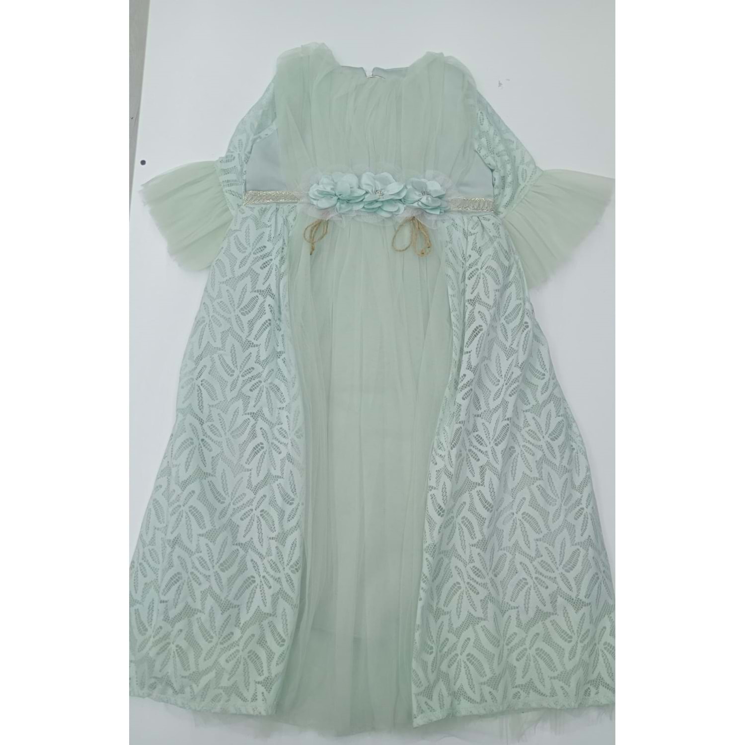 1279 TÜLLÜ DANTELİ ELBİSE - SU YEŞİLİ - 6-7 YAŞ