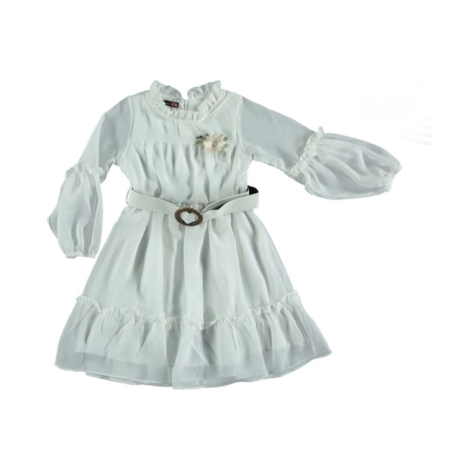 367542 Önü Güllü Kemerli Kız Şifon Elbise 5Y/8Y - BEYAZ - 7-8 YAŞ