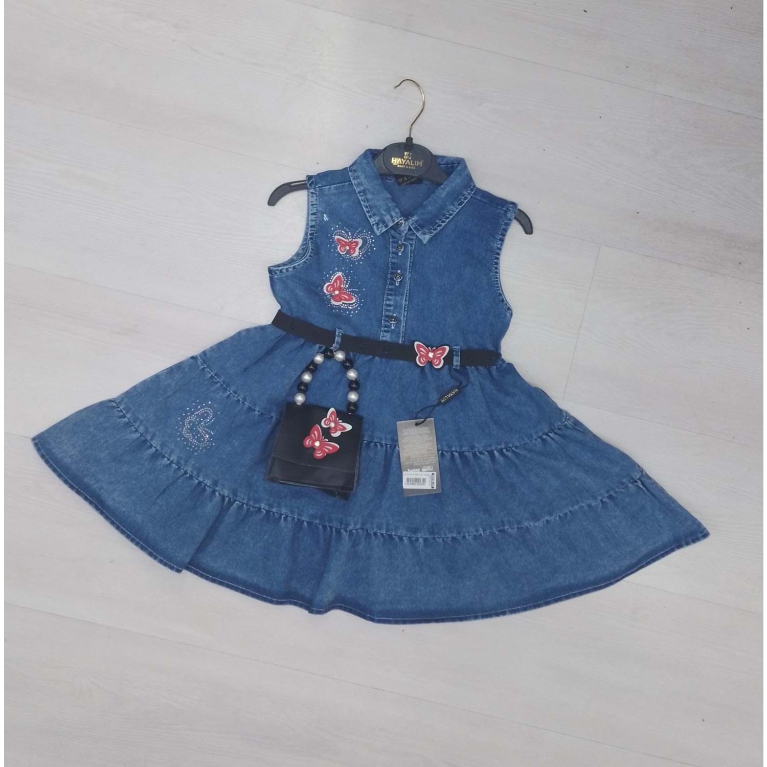 368033 5/8 Yaş Kız Kelebek Çanta Kemerli Elbise - MAVİ - 5-6 YAŞ