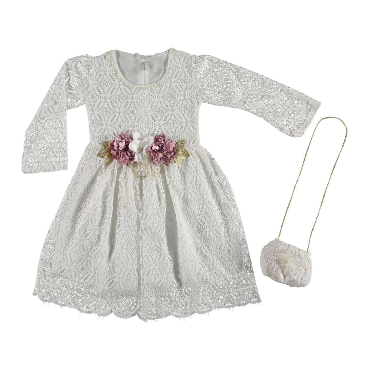 376598 RAŞEL DANTEL ÇANTALI KIZ ELBİSE 4/10 YAŞ