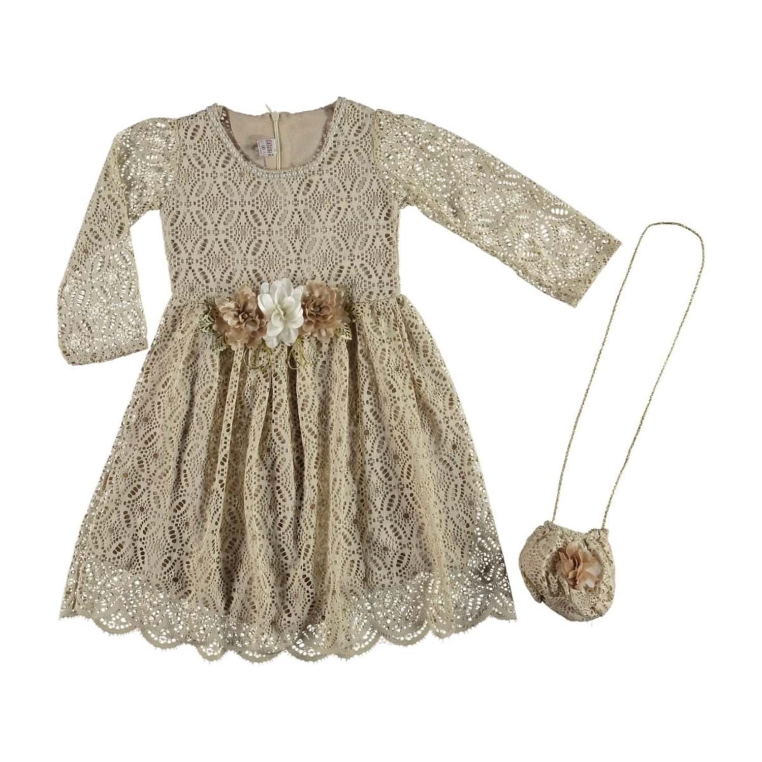 376598 RAŞEL DANTEL ÇANTALI KIZ ELBİSE 4/10 YAŞ - KREM - 5-6 YAŞ