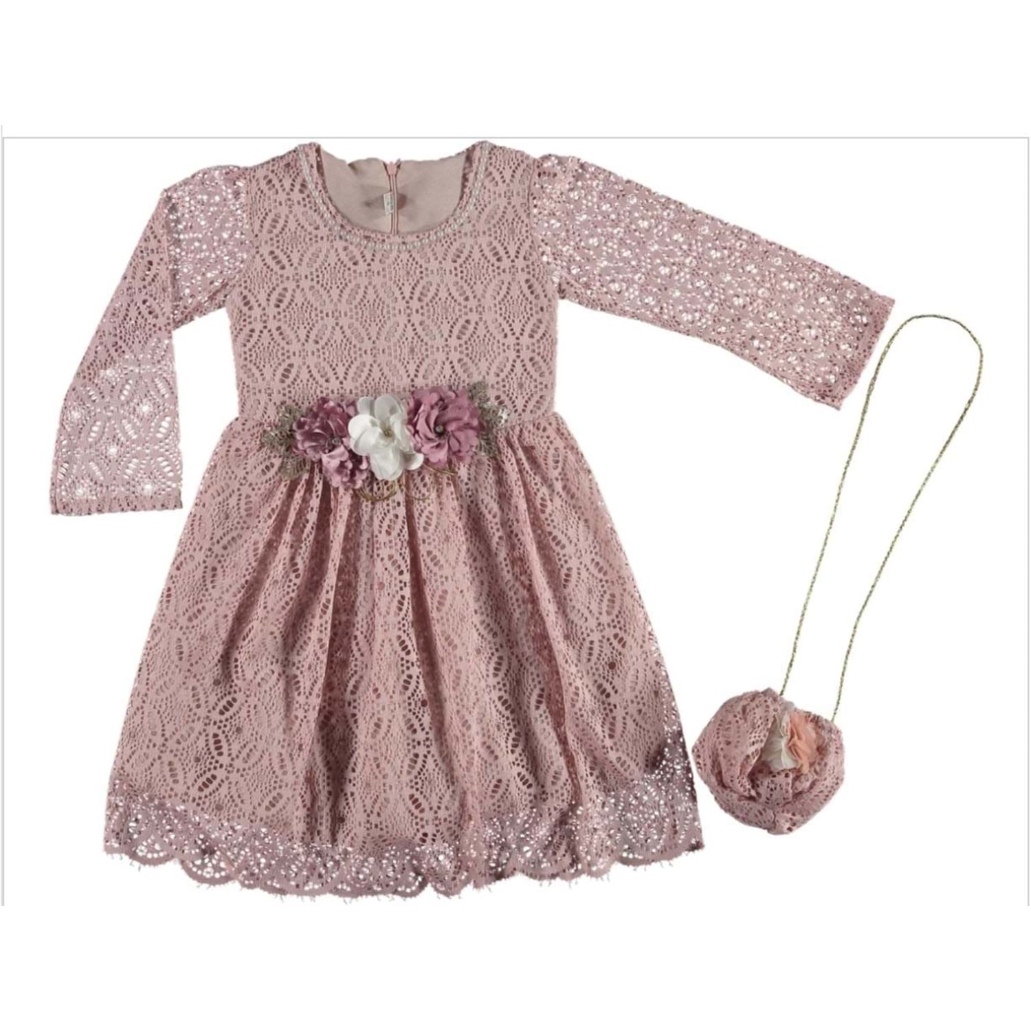 376598 RAŞEL DANTEL ÇANTALI KIZ ELBİSE 4/10 YAŞ - PEMBE - 7-8 YAŞ