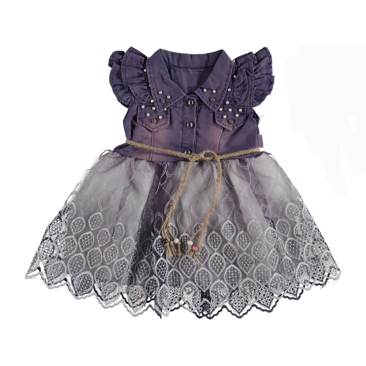 378056 Omz İki Fırfırlı Kot Elbise 2Y,3Y,4Y,5Y - MOR - 3-4 YAŞ