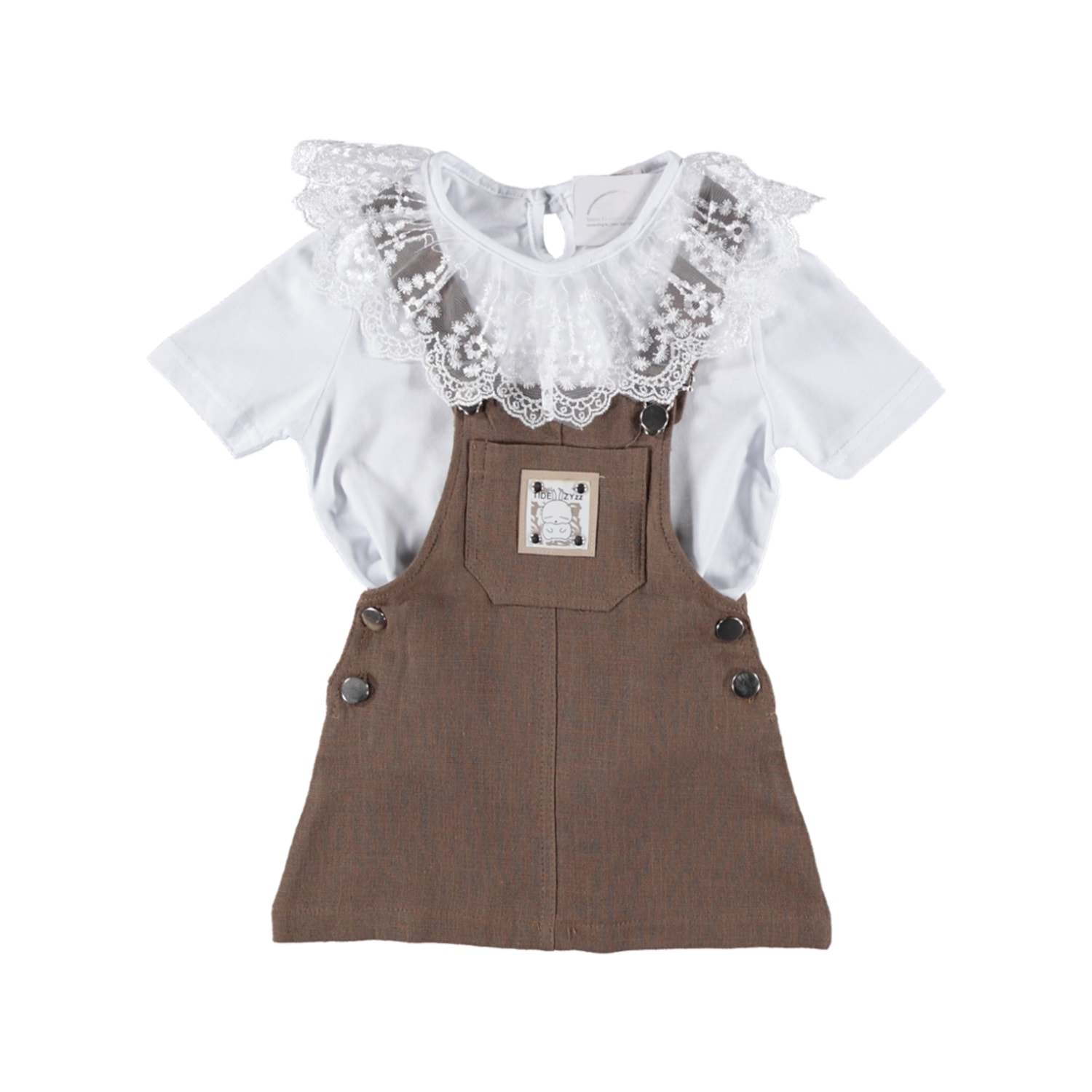 378159 DANTELLİ TİŞÖRTLÜ KETEN SALOPET 3/7 YAŞ - KAHVE - 6-7 YAŞ