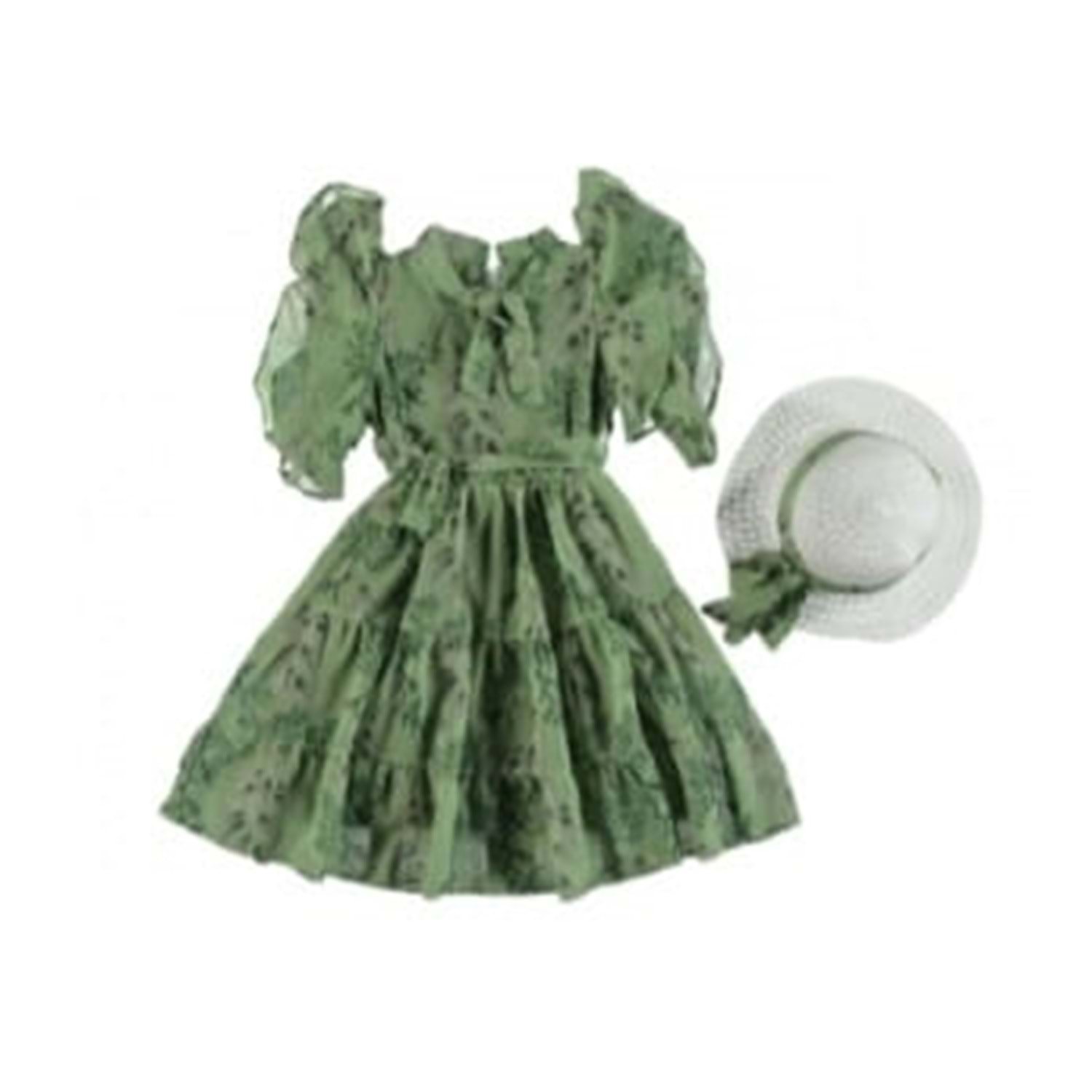 378525 Dal Desenli Şapkalı Kız Şifon Elbise 5Y,6Y,7Y,8Y - YEŞİL - 6-7 YAŞ