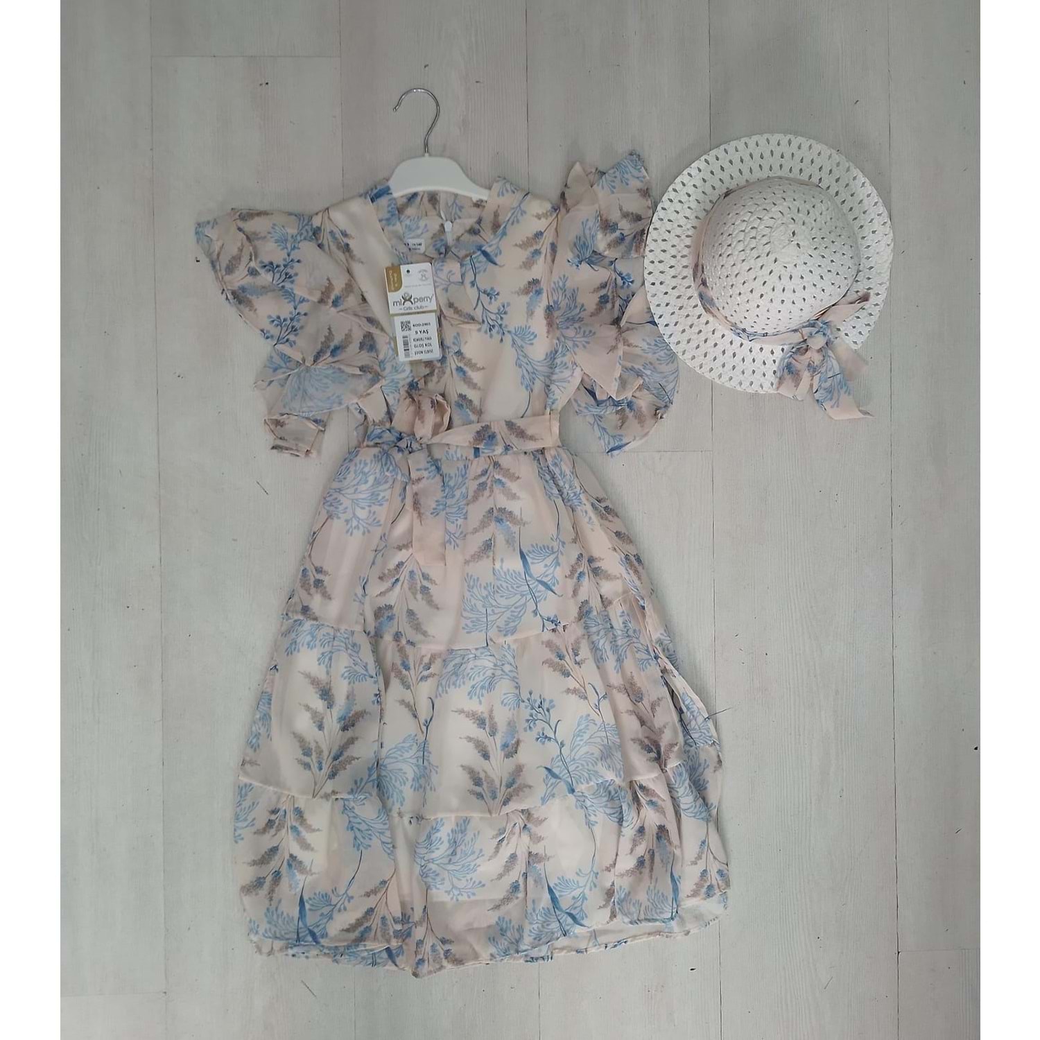 378526 Dal Desenli Şapkalı Kız Şifon Elbise 9Y,10Y,11Y,12Y - PUDRA - 10-11 YAŞ İNDİRİMDE!!445,00 TL400,00 TL -