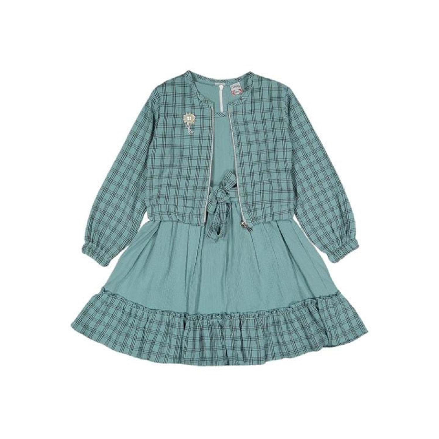 421507 Ekose Elbise 5-8 Yaş 5Y,6Y,7Y,8Y Kız - SU YEŞİLİ - 4-5 YAŞ