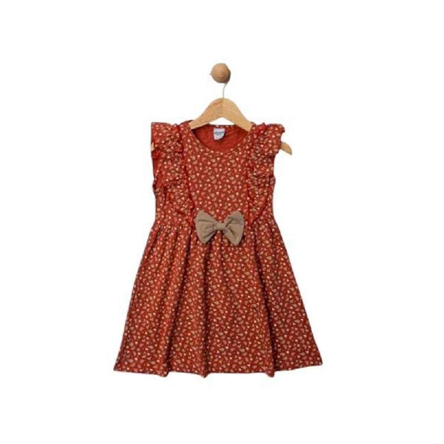 426797 Fiyonklu Desenli Messinho Elbise 2Y,3Y,4Y,5Y Kız - KİREMİT - 4-5 YAŞ