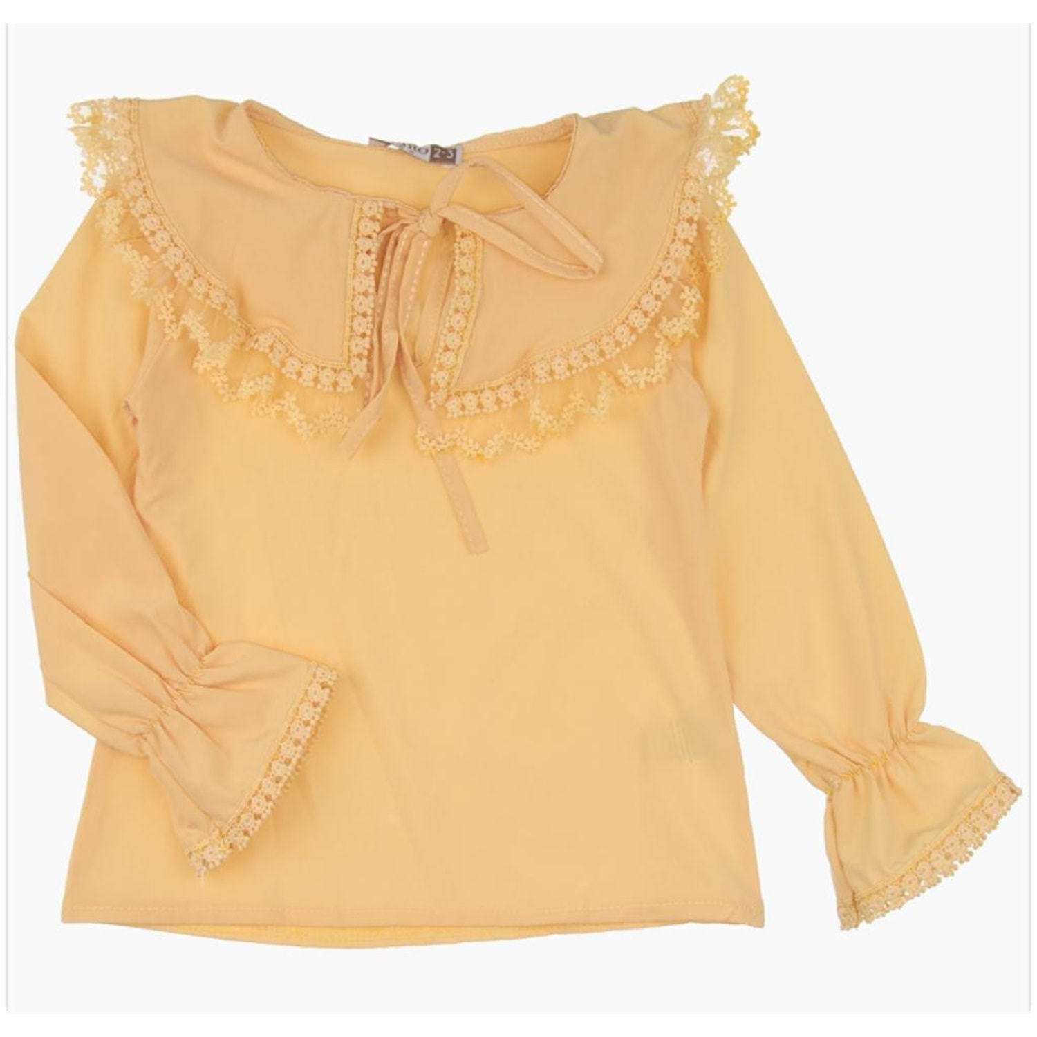3272 6/9 YAS DANTELLI DOKME YAKA BIYE BAGLAMALI BLUZ - SARI - 6-7 YAŞ